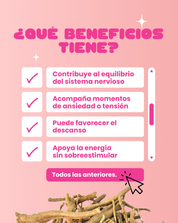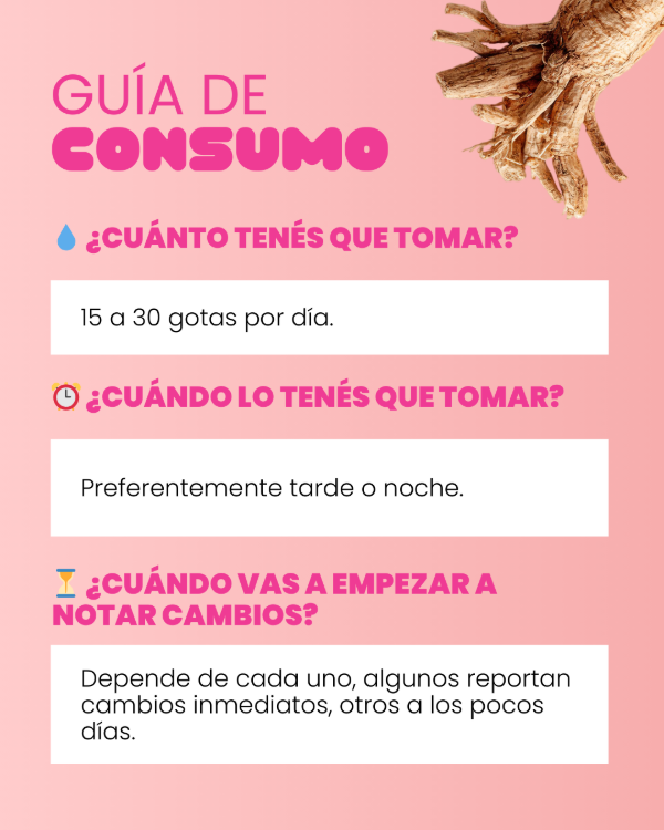 Tintura adaptógena que ayuda a reducir el estrés y promover la calma en momentos de ansiedad o sobrecarga mental.