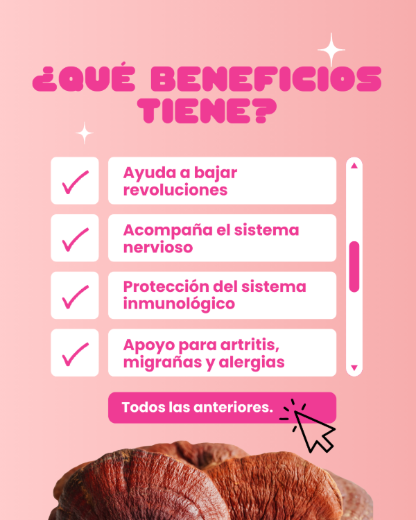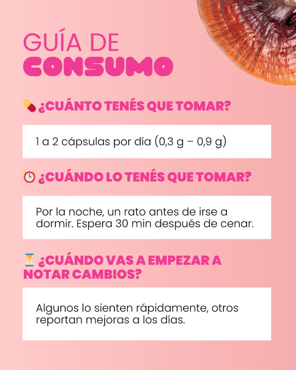 El reishi es un hongo adaptógeno asociado al equilibrio emocional y el descanso profundo. En cápsulas, acompaña rutinas nocturnas y períodos de estrés prolongado.