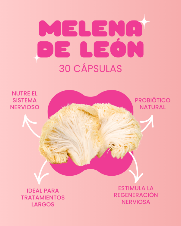 La melena de león es un hongo funcional vinculado al enfoque, la memoria y la claridad mental. En cápsulas, es una opción simple para acompañar estudio, trabajo creativo o tareas cognitivas exigentes.