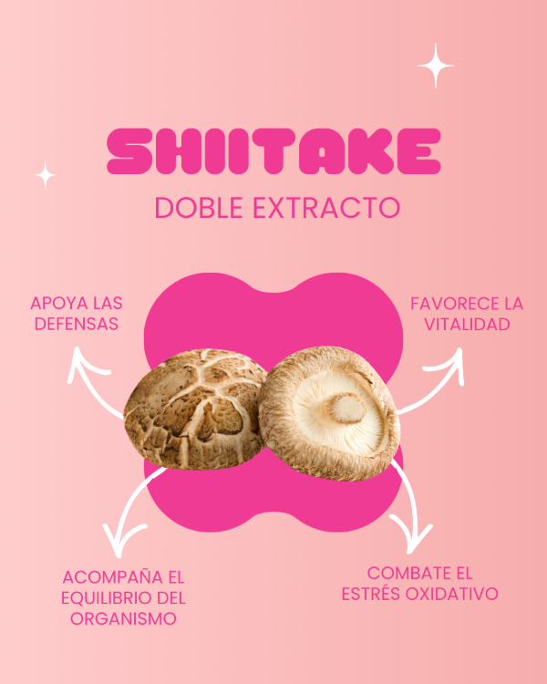 Tintura doble extracto de Shiitake, hongo tradicionalmente asociado al sistema inmune y la vitalidad.